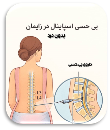 - بیحسی اپیدورال: کنترل عالی درد بدون تأثیر مستقیم بر هوشیاری مادر
